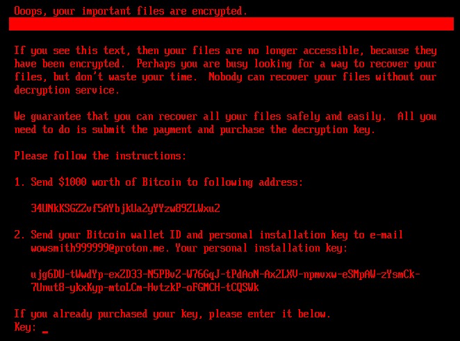 После завершения шифрования происходит еще одна перезагрузка системы, после чего жертве демонстрируется записка с требованием выкупа в размере 1000 долларов США в биткоинах.