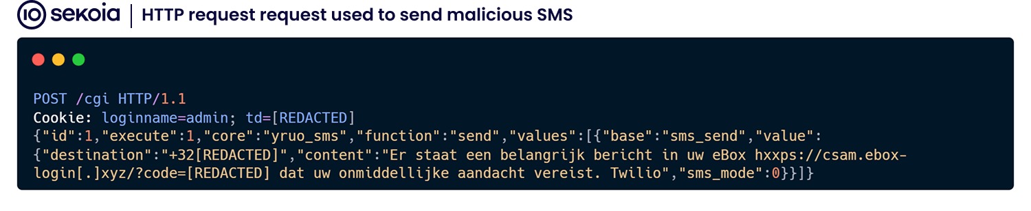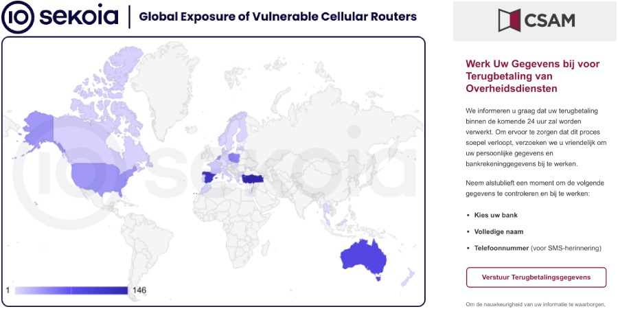 Исследователи Sekoia сообщают, что анализ «подозрительных сетевых следов», выявленных ханипотами компании, привел к их обнаружению сотового маршрутизатора, используемого для рассылки SMS-сообщений с фишинговыми URL-адресами.