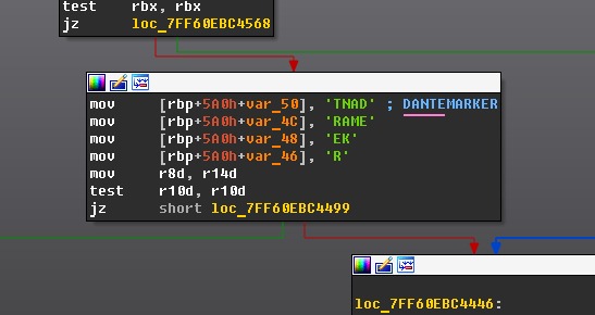 Для защиты от обнаружения Dante использует интересный метод проверки среды и выяснения, безопасно ли продолжать работу: ищет в логах событий Windows события, которые могут указывать на использование инструментов анализа или виртуальных машин (на уровне хоста или гостя).