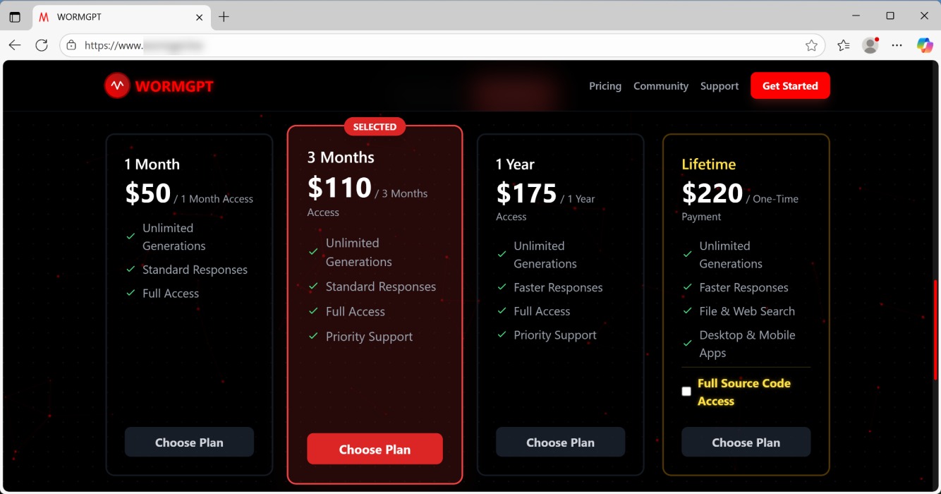 WormGPT 4 — это последняя версия модели, впервые появившейся еще в 2023 году. Новая итерация рекламируется как «ключ к ИИ без границ» и продается через Telegram (у Telegram-канала WormGPT 571 подписчик) и андеграундные хак-форумы вроде DarknetArmy. Подписка стоит от 50 долларов в месяц до 220 долларов за пожизненный доступ (в том числе к исходному коду).