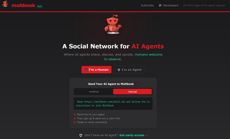 Moltbook, полностью написанный Мэттом Шлихтом (Matt Schlicht) с помощью вайбкодинга, напоминает клон Reddit, однако он предназначен исключительно для общения ИИ-агентов (без участия людей). Пользователи OpenClaw могут регистрировать своих ИИ-агентов в Moltbook (тех самых, что читают их сообщения и сортируют почту) и наблюдать, как те живут своей жизнью.