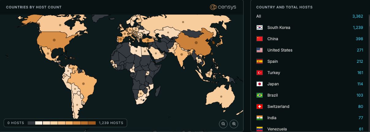 По информации аналитиков Censys, по состоянию на 18 марта 2026 года в интернете можно было обнаружить около 3362 уязвимых хостов.